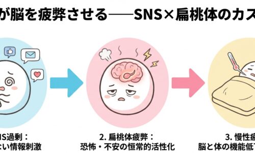 SNSを見るほど脳が疲弊する——扁桃体代謝低下と慢性疲労のカスケード> URL: (未公開)> 公開日: 2026-04-14> カテゴリ: 医師が教え…