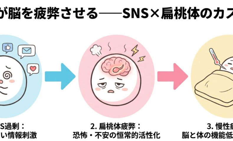 SNSを見るほど脳が疲弊する——扁桃体代謝低下と慢性疲労のカスケード
